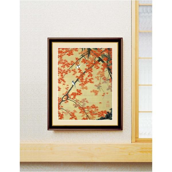〔若冲 鳳凰 旭日〕〔動植綵絵額〕群鶏・白鳳・鶏 伊藤若冲 額装品(茶)F6号 雪中遊禽図