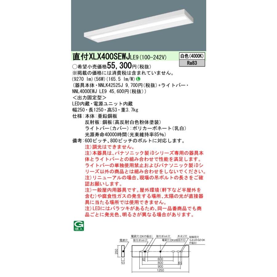 [法人限定] XLX400SEWJ LE9 iDシリーズ 直付型 一般 10000lm 白色 非調光 [ XLX400SEWJLE9 ]