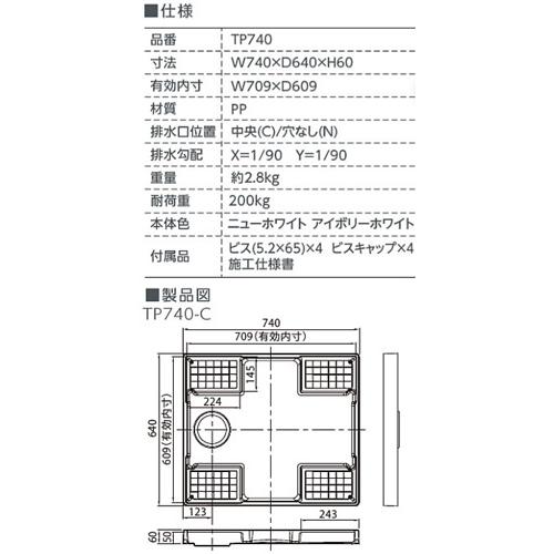 テクノテック TP740-CW3+排水トラップ 洗濯機パンセット[740サイズ][中央排水][スタンダード][PP][ニューホワイト]