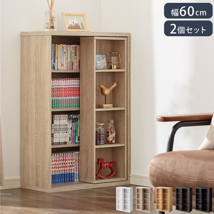 本棚 書棚 スライド式 幅60 シングル 2個セット 木製 コミックラック 漫画 書籍 収納 大容量 ブックシェルフ 木目 おしゃれ ブックラック 書斎棚