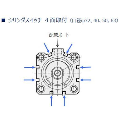 特長 一般環境から特定用途まで幅広くシリズを取り揃えた省スペスシリンダですシリンダスイッチ溝を面すべてに配置しました配管ポトと同一面にもシリンダスイッチを搭載でき視認性メンテナンス性をアップしましたロッド先端はめねじですオプションでおねじタイプもあります多くの商品で採用している形スイッチの搭載が可能ですスイッチの統一化によりお客様での在庫削減に貢献します六角穴付きボルトでダイレクト取付可能です通しボルトねじ込みの両方の取付けができます 用途 ロボットハンドクランプ昇降位置決め圧入などに 仕様 チュブ内径ストロク配管ポト口径取付支持形式ダイレクト取付シリンダスイッチ仕様無接点色表示式線シリンダスイッチリド線長さシリンダスイッチ個数個付最高使用圧力最低使用圧力耐圧力周囲温度但し凍結なきこと使用ピストン速度許容吸収エネルギ