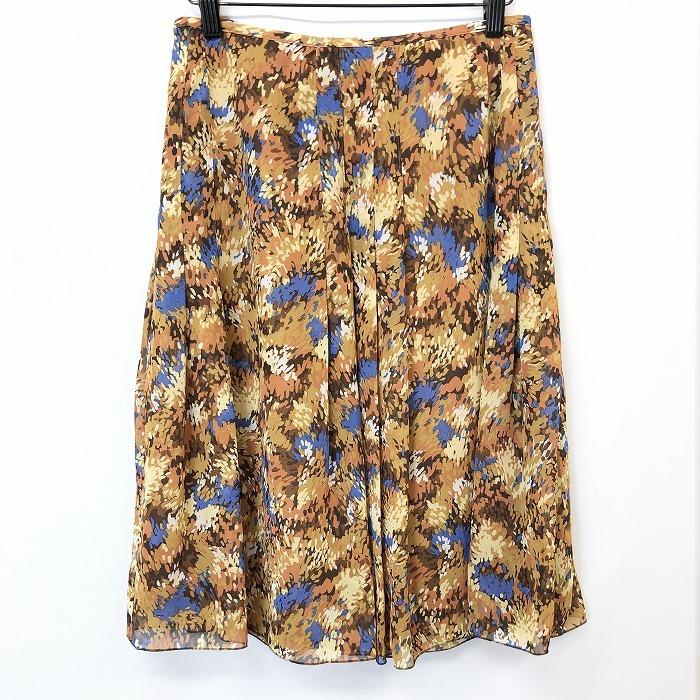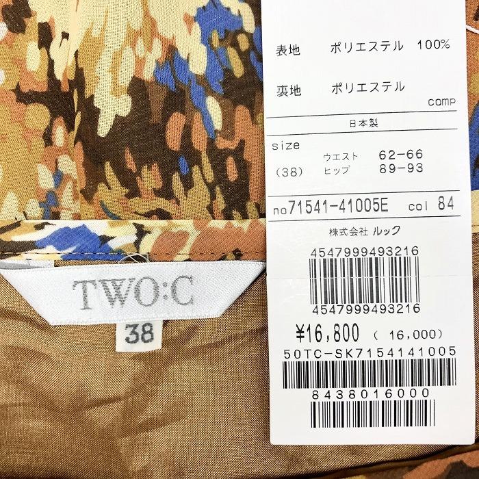 トゥーシー 【新品】TWO:C 薄手 シフォンスカート フレア 裏地付き アート柄 ひざ丈 ポリエステル100% 38 ブラウン 茶色 レディース