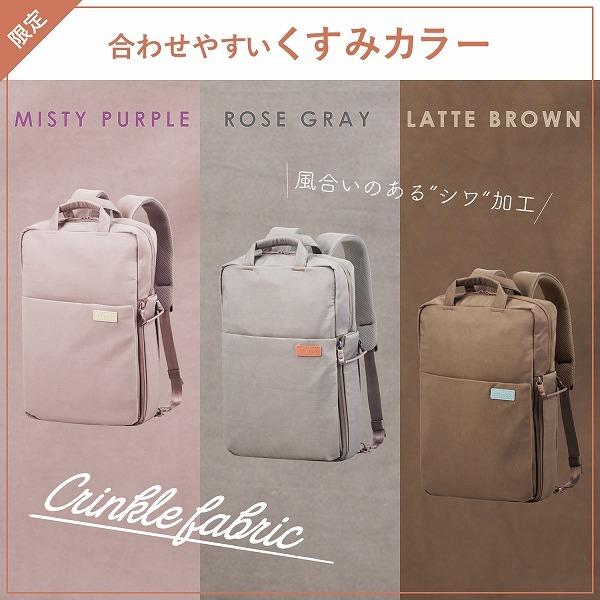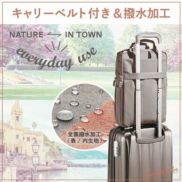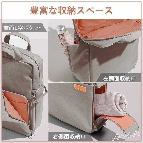 商品情報休日に持って出かけたくなる バックパックのリミテッドカラモデルです 少しくすませたやわらかな色合いの表生地と爽やかなパステルカラの内生地を採用したバイカラデザインです表は風合いのあるシワ加工生地を採用しています生地特性により個々で表情が異なります 背面にショルダ収納ポケットがありショルダベルトを収納しハンドバッグとしても持ち歩けます インチまでのパソコンを独立して収納可能です 中央のファスナ式仕切りを外すことで二気室バッグから一気室バッグへ切替えられる二気室貫通構造です 上部空間には小物を仕分けて収納するのに便利な収納ポケットとファスナポケットが付いています 右側面収納口には簡単に開閉できるハンドル式ダブルファスナと音がせずスマトに開閉できるマグネットフラップを採用しています 右側面の収納スペスには着替えやポチなどが収納可能です 左側面の収納スペスには折りたたみ傘やペットボトルを独立して収納可能です 前面に大きく字型に開閉でき手帖などの小物が取り出しやすいファスナポケットを配置しています 背面にバッグをおろさずにスマトフォンなどを収納可能なファスナポケットを配置しています 背面にはキャリバへ固定できるキャリベルトが付いています 表生地と内生地全体に撥水加工を施し水を弾きます内部への水の浸入を完全に防ぐものではありません 商品詳細外寸幅奥行高さ ハンドルショルダベルト部含まず参考収容寸法バッグ本体内寸幅奥行高さ収納部内寸幅奥行高さボトル収納部内寸幅奥行高さポケット数上部収納スペス内側ポケットファスナポケットポケット前面収納スペス内側ポケット右側面収納口左側面ボトル収納口背面ショルダ収納口隠し背面ポケットカラロズグレ材質表面裏面ポリエステル撥水重量約 ご注意 ご注文のタイミングにより納期がかかる又は完売などの場合もございます 商品の情報詳細画像について保証は致しかねます 画像はイメジです商品以外が含まれる又は商品と異なる場合があります 必ずメカホムペジなど合わせてご確認ください 北海道沖縄その他離島は配送致しかねますあらかじめご了承くださいメカ エレコム型番 こちらの製品情報ペジもご覧ください