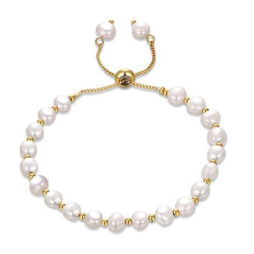 女性用パールブレスレット ゴールド 調節可能なスライダーブレスレット 上品なチェーンブレスレット レディース ガールズ 花嫁 ブラ 並行輸入品
