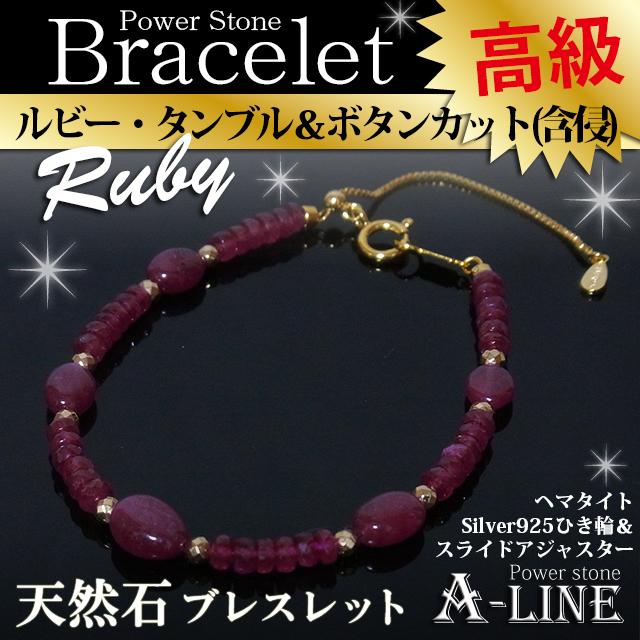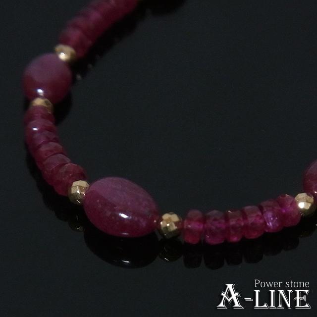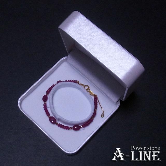 パワーストーン 高級ワイヤーブレスレット ルビー(含侵)タンブル&ボタンカット 高級ケース付き ppw275
