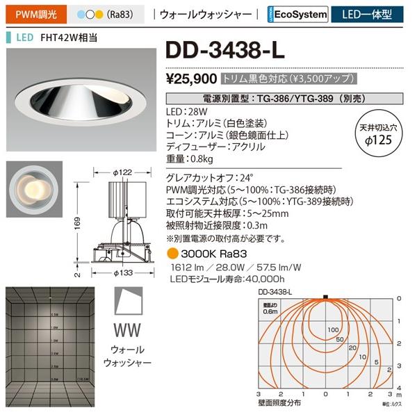 DD-3438-L 山田照明 ダウンライト φ125 白色 LED 電球色 調光 ウォールウォッシャー 電源・調光器別売
