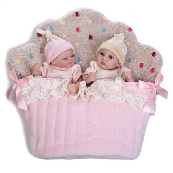 リボーンドール フルシリコンビニール リアル赤ちゃん人形 ミニサイズ25cm 入浴可能 かわいいベビー人形 双子ちゃんセット