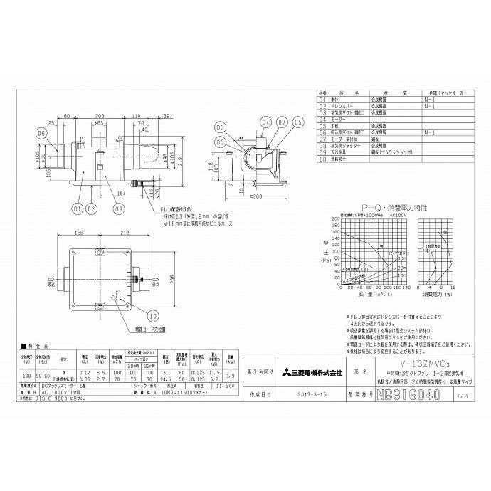 三菱 換気扇 【V-13ZMVC3】 換気扇 24時間換気機能付換気扇 ダクト用換気扇 [新品]【純正品】
