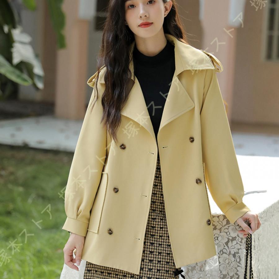 トレンチコート レディース スプリングコート アウター 秋物 秋服 コート レディース ショート丈 長袖 トレンチ 大きいサイズ おしゃれ きれいめ 体型カバー