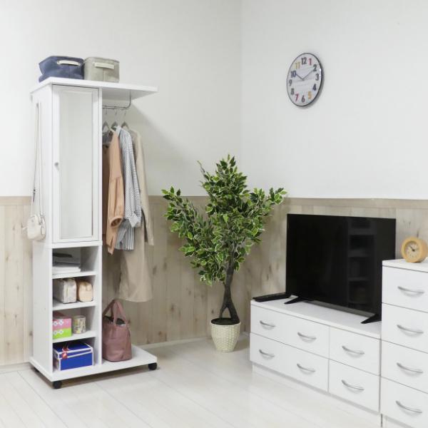 クロシオ ミラー付ハンガーラックホワイト 62137 【・日時指定・キャンセル・北海道沖縄離島配送】 -お取り寄せ-