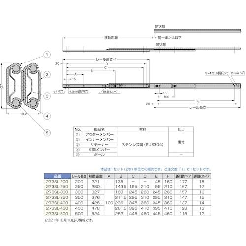 スガツネ工業 (190116717)ステンレス鋼製スライドレール ( 273SL-450 ) スガツネ工業(株)