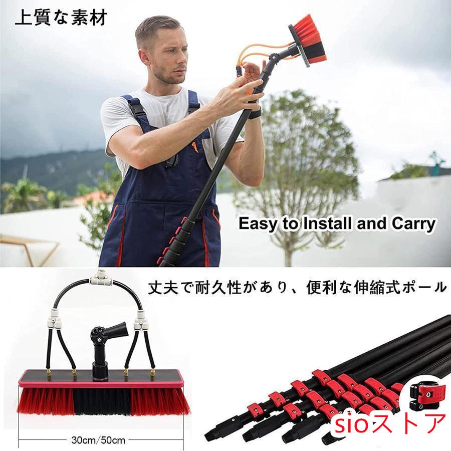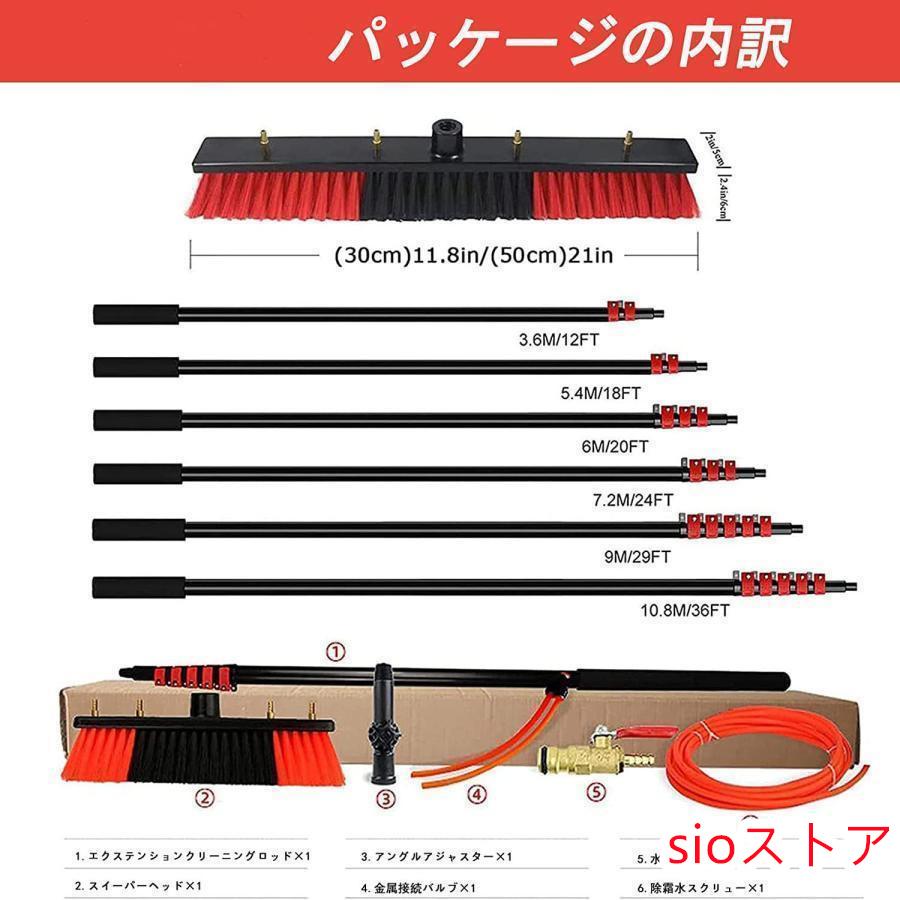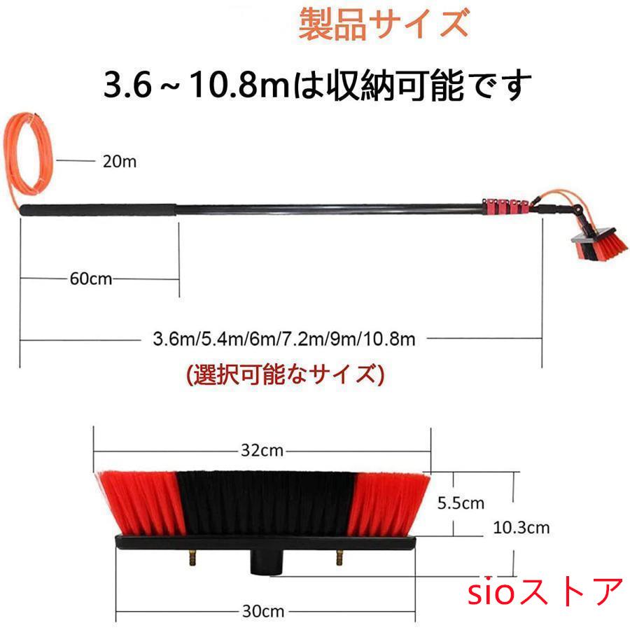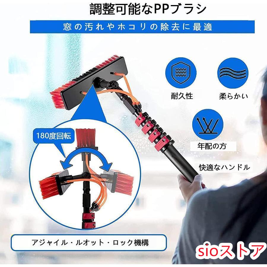 高所掃除ブラシ 散水ブラシ 3.6m~9m 給水伸縮ブラシ 外壁掃除 35Cmブラシヘッド 窓ガラス/壁掃除 高所ワイパー 超ロングポール 業務用 軽量 取り外しが簡単