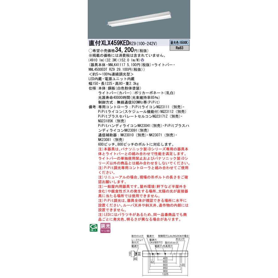 [法人限定] XLX459KED RZ9 パナソニック iDシリーズ 天井直付型 富士型 40形 PiPit 調光 一般タイプ 5200lm 昼光色 [ XLX459KEDRZ9 ]