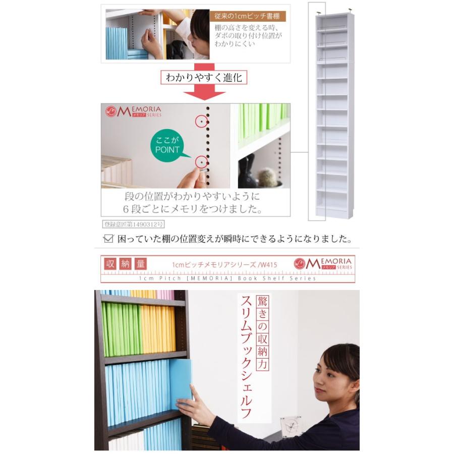 本棚 薄型 天井 つっぱり 奥行 16.5 幅 41.5 高さ238 〜 253 業界初 棚が全段動く オープンラック 12段 1cm単位 1cmピッチ 棚 調節