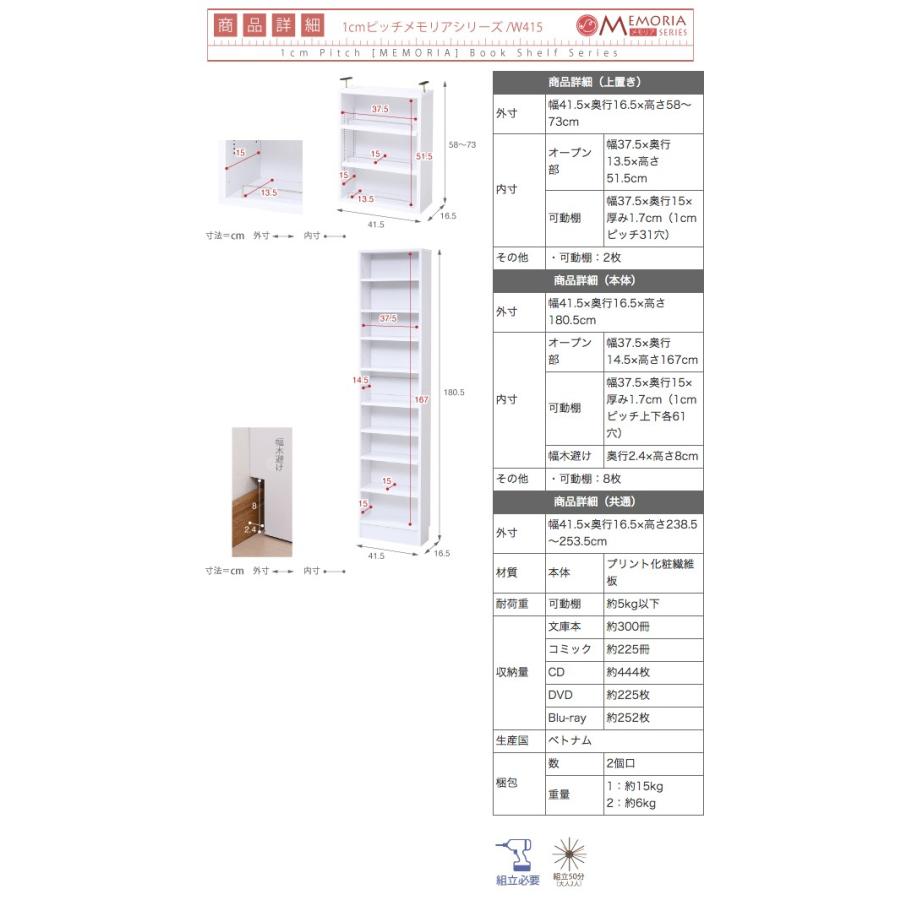 商品説明 突っ張り上置きセットなので天井まで空間の無駄を省いて大量収納間隔で棚板が設置でき固定棚の無い画期的な仕様により従来よりも自在な棚割りを可能にしましたラックの中にデッドスペスを作らずより多くの物が収納できます薄型だからリビングだけでなく廊下や狭いスぺスでも収納を確保できますシリズで揃えればまるで図書館 スリムなサイズの薄型幅はリビングにもプライベトルムにも本体サイズ 外寸幅奥行高さ組立時間目安大人人 お客様組立分キワド 本棚 突っ張り コミック スリム ボックス ラック リビング 奥行 雑誌 収納 縦長 大容量 大量 薄い 薄型 漫画 マンガ 木製 隙間 スキマ 棚 書棚 オプン棚 壁面 壁面収納 本棚 家具 文庫本ラック 漫画 マンガ 文庫本 収納 薄型ラック 薄型 薄い 本棚 棚 幅 高さ オフィス 収納力 仕切り ワイド リビング ウォルラック 新生活 一人暮らし ウォルナット ブラウン 耐震 地震 対策 本商品はメカ直送にてお届けします お届け日時のご指定はあくまでご希望として承っておりその日時でのお届けを確約するものではございません 日時指定のない場合は最短でのお届けとなります 商品を複数ご注文の場合は数量分の送料がかかります 追加送料の発生するお届け先 沖縄離島にお届けの場合は追加送料を申し受けます お見積りいたしますのでご注文前に郵便番号を添えてお問い合わせください