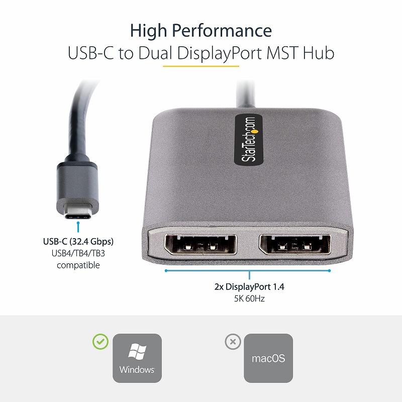 MSTハブ USB-C接続 デュアルモニター 4K60Hz DisplayPort 1.4 Altモード HDR 30cm ケーブル Windowsのみ マルチディスプレイ 分配器 スターテック 送料無料