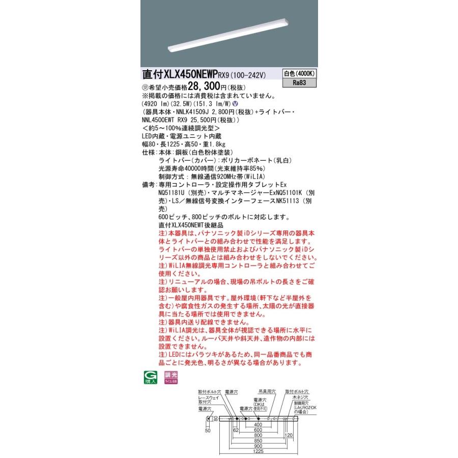 【法人様限定】パナソニック XLX450NEWP RX9 LEDベースライト 40形 笠なし型 5200 lm WiLIA無線調光 白色【NNLK41509J + NNL4500EWT RX9】