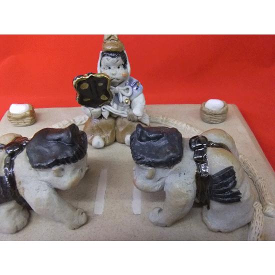 手作りの陶人形 おすもうさん 行司・みあってセット 縁起 癒し美濃焼人形 秋のなごみセット