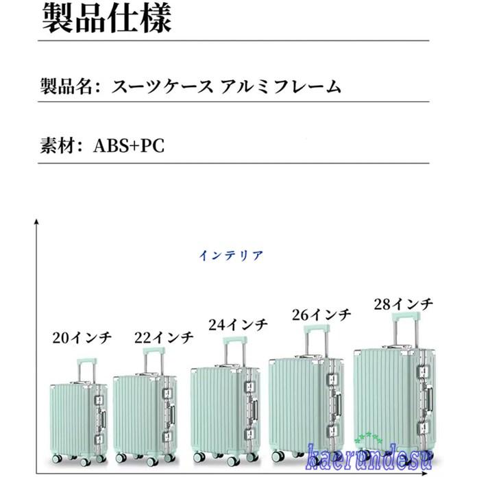 合理的な仕切りデザインロック収納性が非常に高く初心者の方から旅慣れた方まで幅広くご利用頂けるスツケスです耐久性には優れ丈夫かつ長持ちです仕切り板も荷物のこぼれを防ぎます海外旅行には欠かせない世界基準のダイヤル方式のロックを採用しておりより安全で便利です注意本体の鍵穴は職員の検査用ですのでお客様には付属の鍵はございません折りたたみ式カップホルダ便利な折りたたみ式ドリンクホルダ付きバックカップホルダミルクティカップ傘いつでも配置でき旅行をより便利にすることができます滑りにくいソフトハンドルで長い時間の手提げでも手は疲れませんアルミハンドルを搭載アルミニウム製の超軽量のキャリバは伸縮可能で自分に似合う高さまでボタン一つで調節できますレディスにもメンズにも合いますダブルキャスタが付属していてお旅をよりリラックスにより快適にします同時に静音効果もありストレスなく走行できます 製品サイズサイズ重さ超軽量泊に似合いますは一部の航空会社だけに適用しますので事前に航空会社に確認したほうがいいんですサイズ重さ泊以内サイズ重さ泊以内サイズ重さ泊以上パスワドの変更方法初期パスワド両側のオンオフボタンを握るとパスワドロックが開きます内側に引っ張った状態を保持しギアを回してパスワドを設定しますパスワドを設定したらボタンを放してパスワドの設定が完了しますご注意初期パスワドサイズについては実数値と規定値に多少の誤差が生じますのであらかじめご了承ください機内持ち込みの可否については旅客機によって条件が異なりますのでご確認の上サイズを選択してご購入ください商品の品質には万全を期しておりますが万一不良破損誤納品などがございましたらお手数をお掛け致しますがご連絡をお願い致します