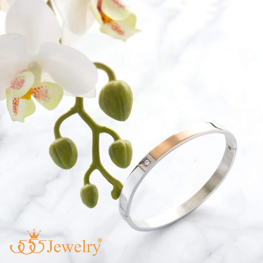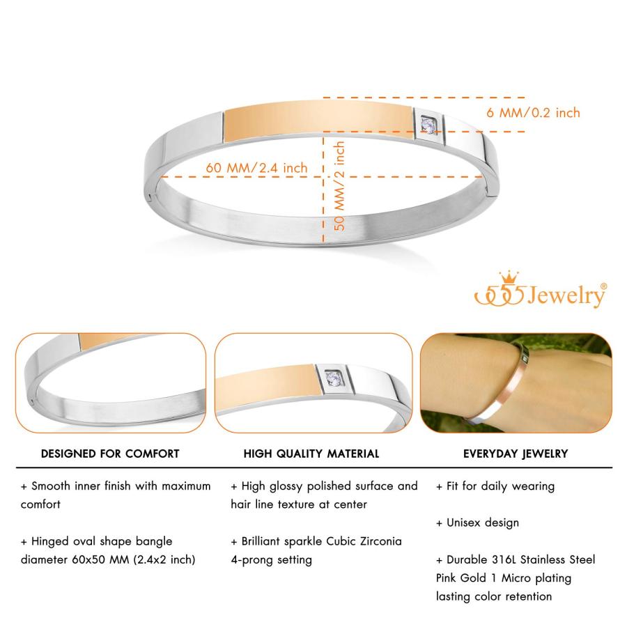 555Jewelry ステンレススチール ヒンジロック キュービックジルコニア カフバングル ブレスレット 男女兼用 555Jew 並行輸入品