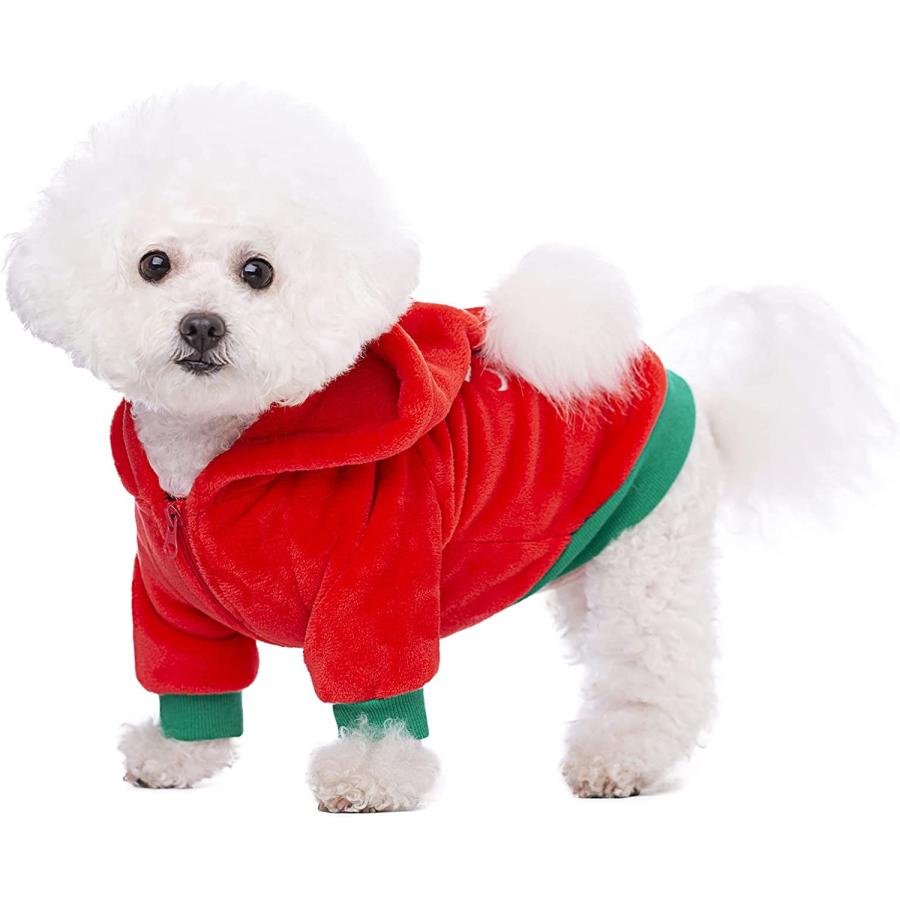 Christmas Small Dog Clothes Outfit Flannel Puppy Dog Hoodie with Hat Sweatshirt for Small Medium Dog