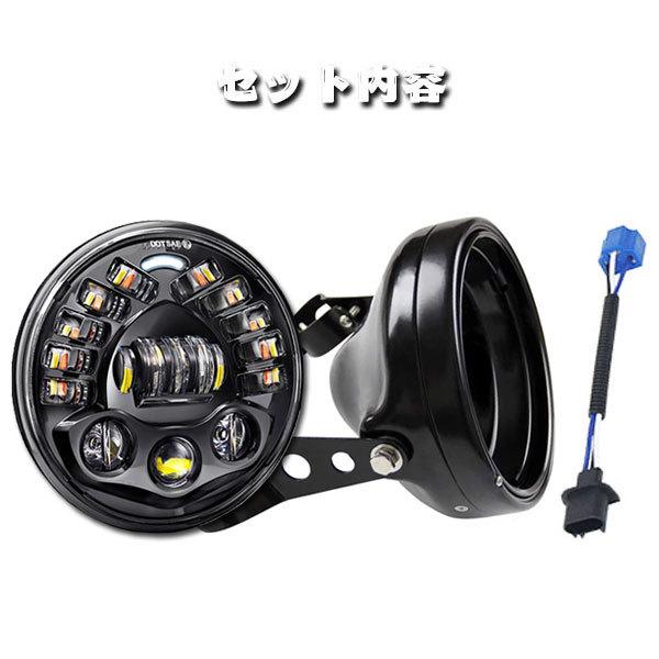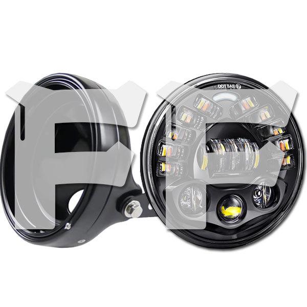 送料無料● ハーレー ヤマハ ホンダ スズキ カワサキ LED 7インチ 70W ヘッドライト ハウジング ブラケット Hi.Low.DRL.ウインカー 1セット