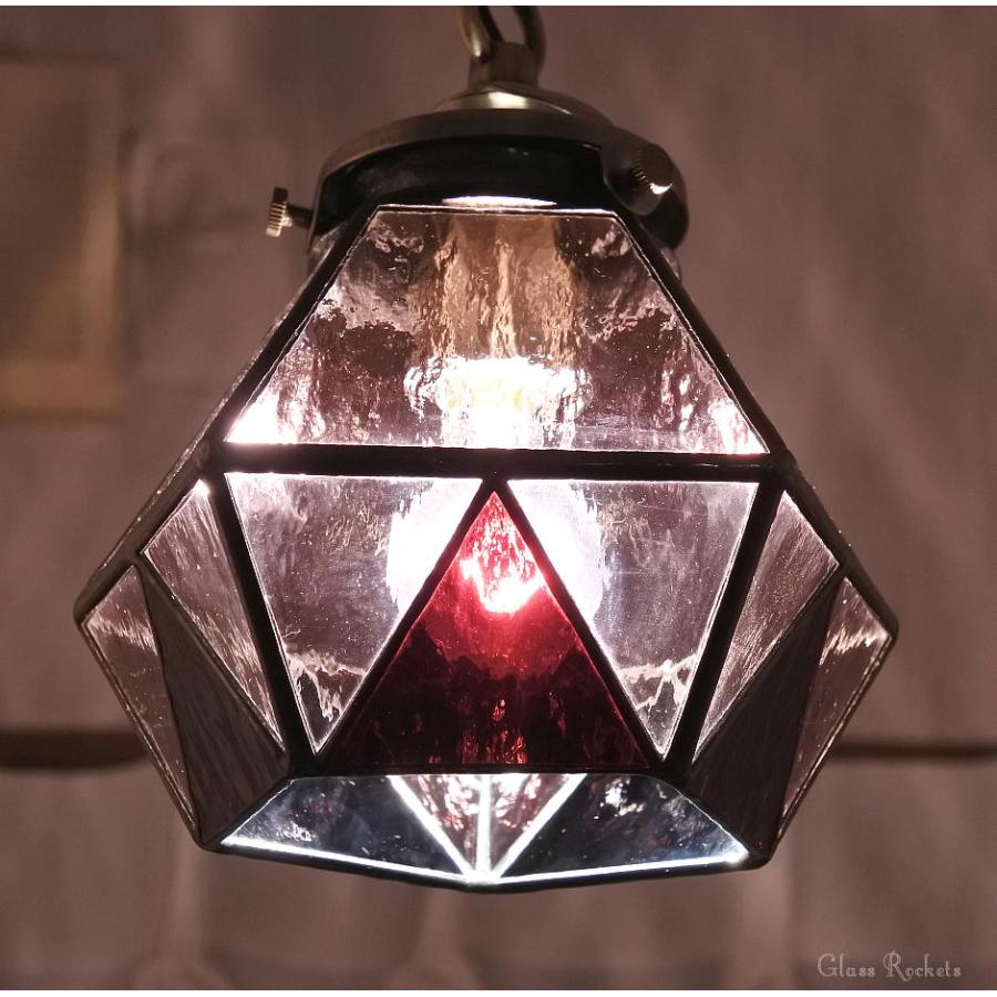 ダイヤランプ パプル作品は淡い赤紫ガラスと濃いめの赤紫ガラスで制作したペンダントランプ作品です小さくてかわいい作品ですので玄関先や階段リビングトイレなどのインテリアランプに最適です またリビングなどでは複数配置してもお洒落な空間を演出できます 金属部分はアンティクブラック仕上げ 全体長さ約 天井からランプ下先までランプ本体 高さ約巾約 白熱電球付き 当工房のランプは全て電球対応です取り付け簡単取り付け金具は引っ掛けシリング対応金具 取り付け説明 書付き 天井シリング部分を覆い隠すフランジ付き 作品はオダ制作となりますこの場合お届けまでに日程かかりますご了承願いますお急ぎの場合にはご連絡頂ければ早急に対応可能な場合御座いますので一度ご相談下さいまた複数個ご希望の場合にも対応可能ですのでお気軽にご相談下さいこの他色の変更個数追加等オリジナルオダ制作も致しますのでお気軽にご相談下さい別途お見積もり致します