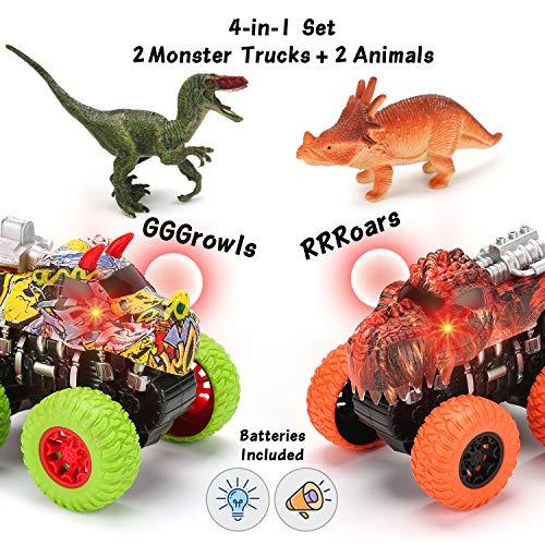 モンスタートラックおもちゃセット 2台の恐竜トラック+2台のリアルなおもちゃの恐竜 レッドライトと轟音? MOBIUSフリクションパワ 並行輸入
