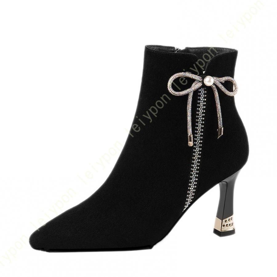 ショートブーツ レディース ヒール8cm ブーティー ピンヒール 美脚 おしゃれ 歩きやすい 黒 疲れにくい 秋冬 アンクルブーツ ポインテッドトゥ レースアップ