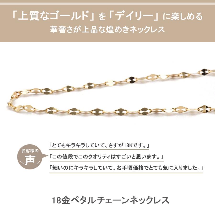 18金 ネックレス チェーン 18k k18 ペタルチェーン 幅1.0mm 38cm 18金ネックレス レディース プレゼント