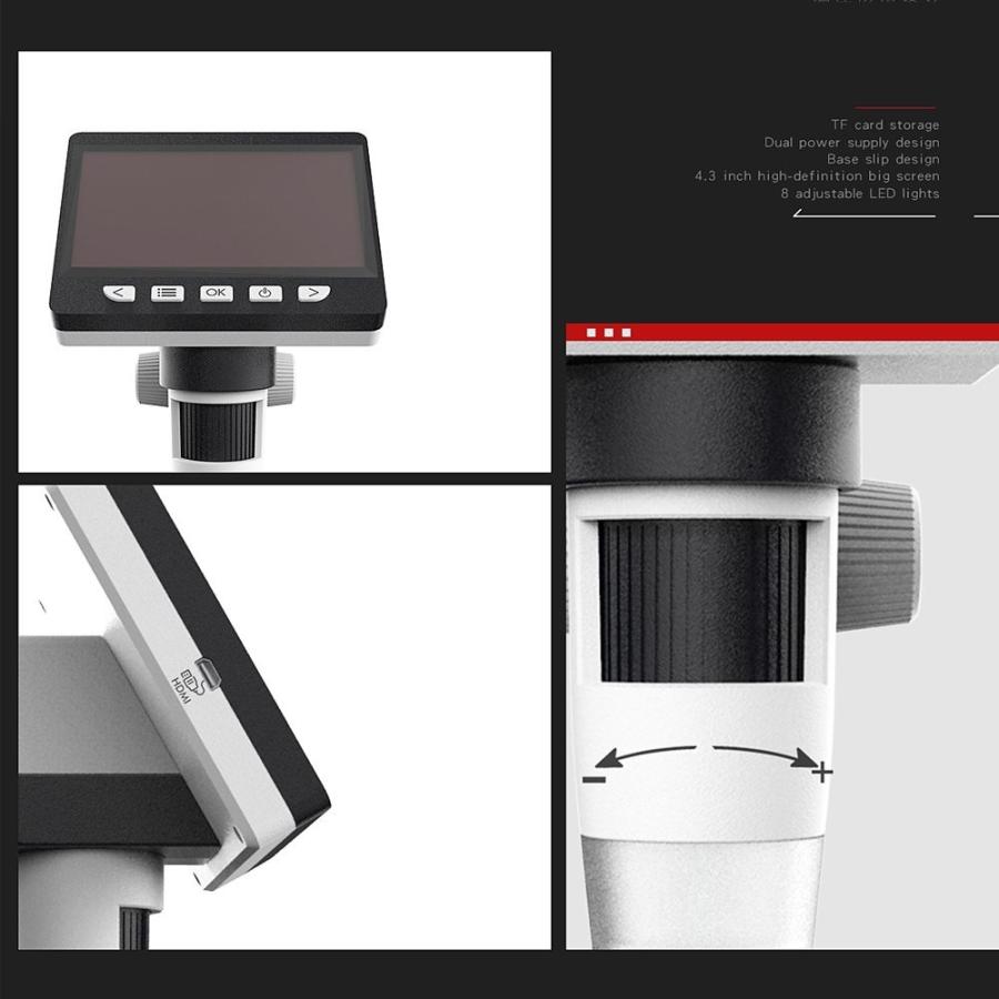 ポータブル デスクトップ 4.3インチ液晶画面 デジタルマイクロスコープ 顕微鏡 8 LEDライトmicroSDカード保存