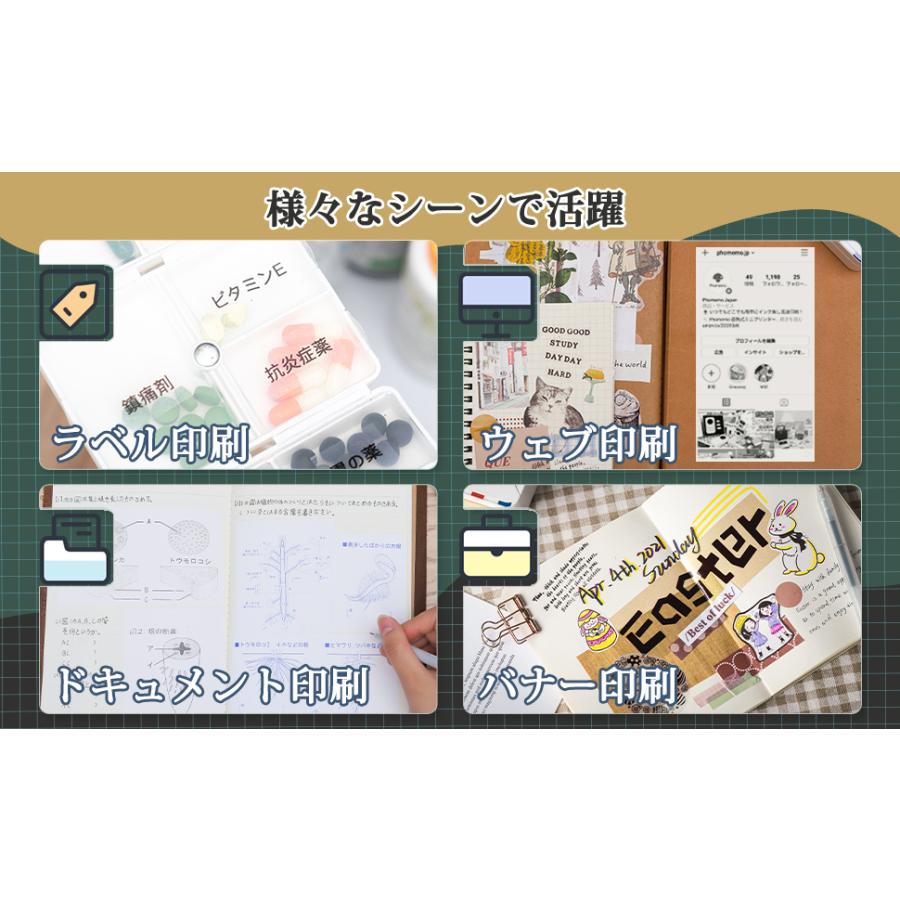 でスマホに接続モノクロ写真テキストメモイラストなどの印刷に 幅の感熱紙に対応アプリで編集印刷 でスマホに接続でスマホと接続して印刷が可能です 専用アプリには個以上のフリ素材個以上のテンプレト種類の可愛いフォントがインストルされていますメモの編集スマホ内にある画像ドキュメントリストポストイットのメモバナプレンテキストペジを印刷できますサマルプリンタ感熱タイプのロル紙シルテプなどに解像度でモノクロプリントが可能です日本製プリントヘッドを内蔵しクリアで綺麗な印刷効果を得られます写真テキストメモイラストなどの印刷におすすめですホルダ付き内蔵のペパロルホルダによりロル紙がオフセットされることなく特定の位置に保持されコンテンツが確実に印刷されます安定性が高く詰まりを防ぎますコンパクト軽量コンパクト軽量でカバンや財布などへ入れて旅行通勤学校などどこにでも持ち運びできます印刷方式サマルカラ白黒解像度対応 以降インタフェイス充電用充電時間時間連続使用時間時間バッテリリチウムポリマ電池 サイズ 重量内容物本体