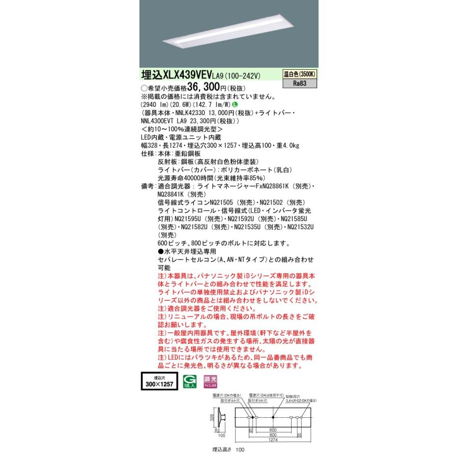 安心のメーカー保証N区分 パナソニック施設 XLX439VEVLA9 『NNLK42330+NNL4300EVTLA9』 ベースライト 天井埋込型 LED