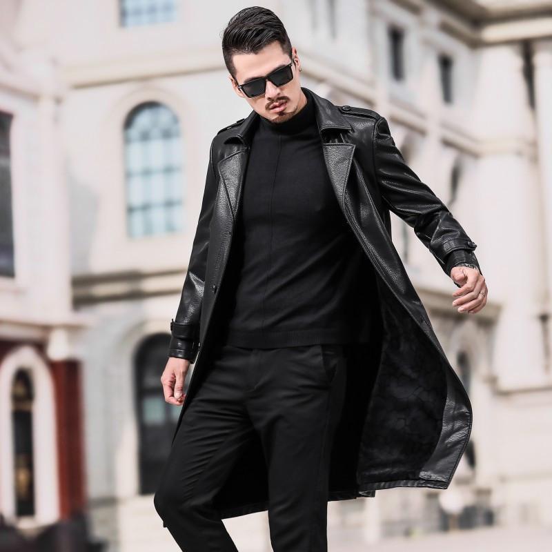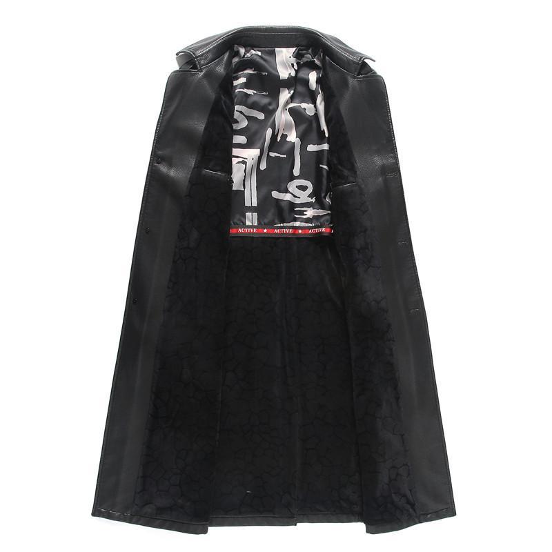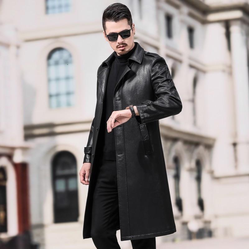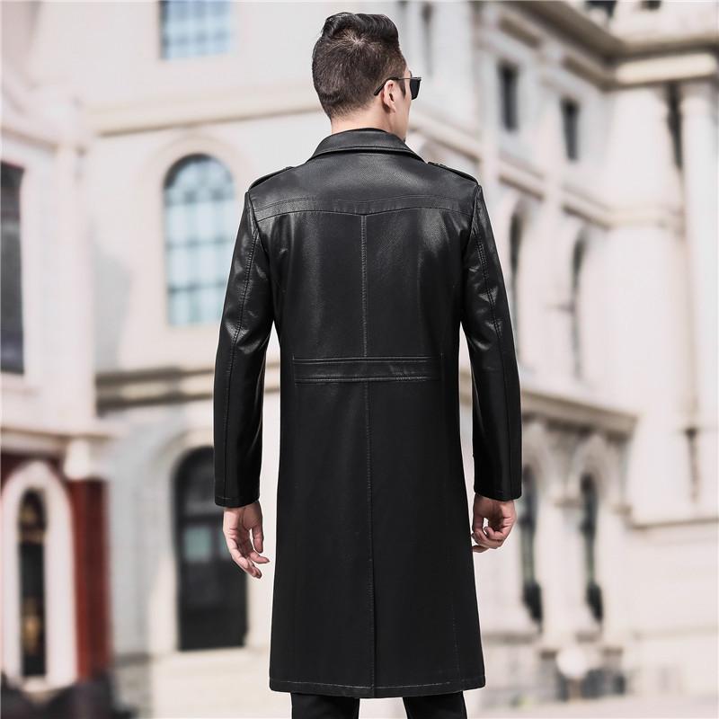 レザーコート トレンチコート 膝丈 革 ロングコート 革コート ロング丈 裏起毛 革ジャン 防寒 メンズ