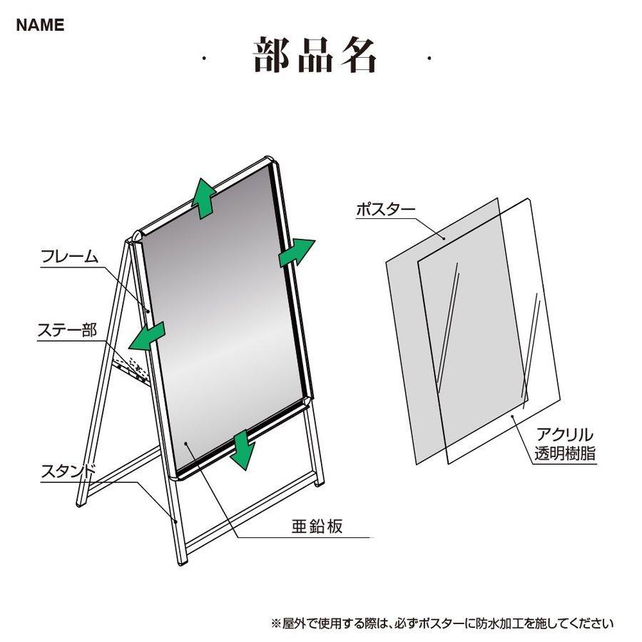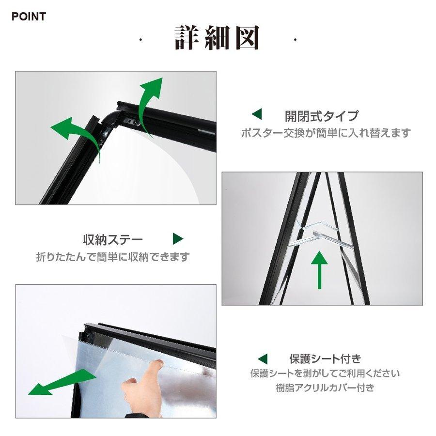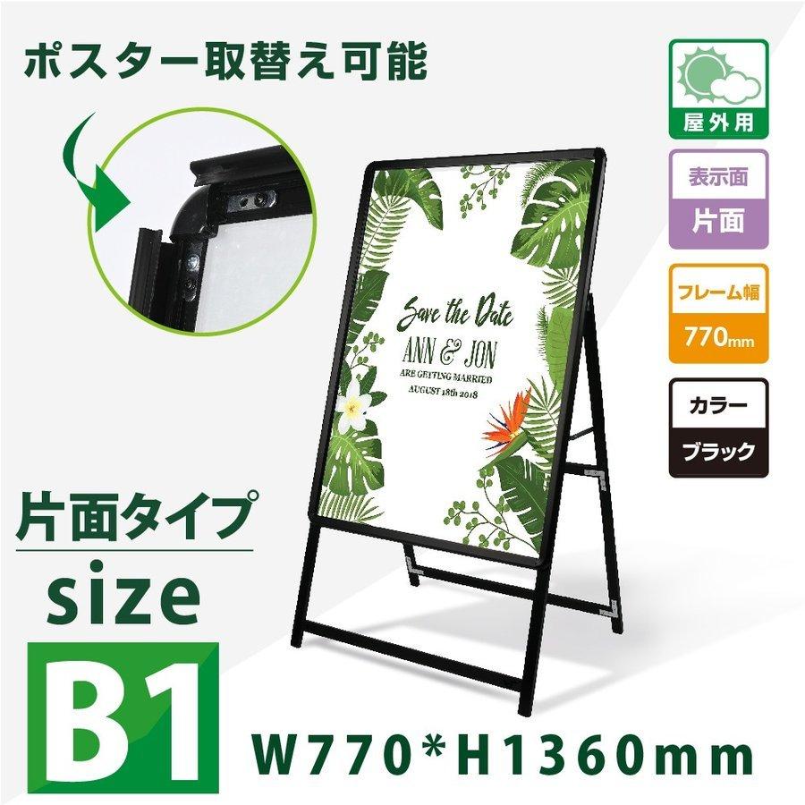ポスター入れ替え式 黒色 A型看板 B1片面 グリップ式 A型スタンド看板 W770mmxH1360mm kjc-b1-s【法人名義:可】