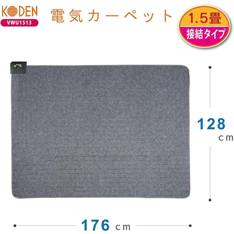 コウデン ホットカーペット 1.5畳 本体 グレー 小さく畳める 省エネ スライド温度調節 176×128cm VWU1513