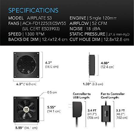 AC Infinity AIRPLATE S3 静音冷却ファンシステム 6インチ 速度制御付き ホームシアターAVキャビネット用