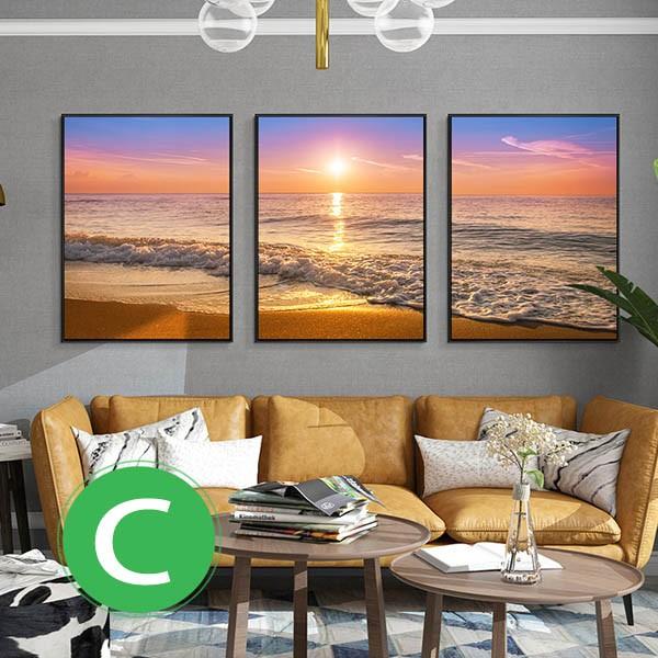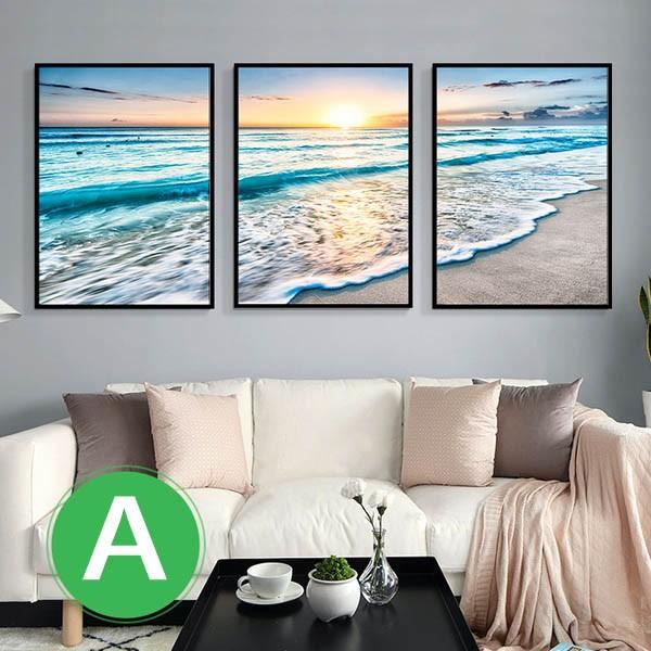 3枚セット アートパネル フレーム絵画 西海岸風 海辺 波打ち際 コースタル 夕日 海岸風景 夕日 インテリア絵画 ウォールデコ