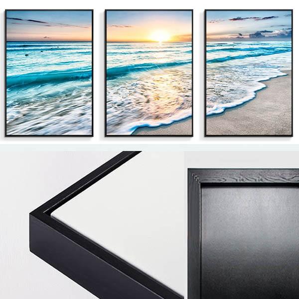 壮大な夜明けの海の風景になりますアメリカ西海岸風なデザインでそれぞれ単品でも壁掛けできます壁に掛けるだけでお部屋が一気にモダンでスタイリッシュな空間に自分用はもちろんのこと新築引っ越し祝いや結婚祝い誕生日開店祝いなどの贈答品としても気に入っていただけること間違いなしお部屋にもお店にも使えます商品について絵画自体はプラスチック製の黒の木目の枠に入っており高級感がありますサイズ素材 プラスチック特殊コティング紙重量 枚約付属品フックピン本本