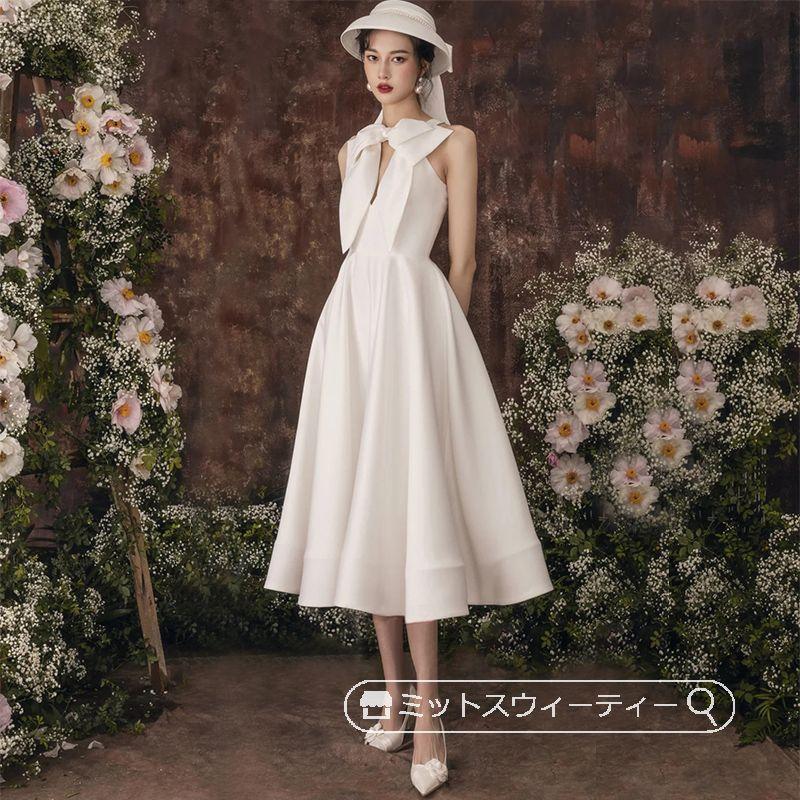 カラードレス 花嫁ドレス 二次会 結婚式 前撮り パーティードレス 演奏会 発表会 ホワイト ウエディングドレス 同窓会 披露宴 ミディアム丈ドレス 夏 個性的