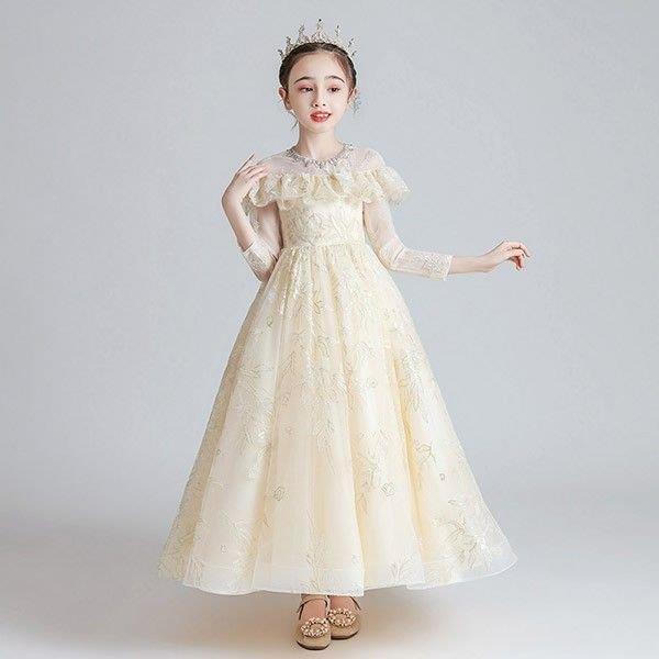 ピアノ発表会 ドレス 中学生 ワンピース 女の子 キッズドレス 子供服 ロング丈 ロングドレス ガール 子供ドレス 長袖 演奏会 フラワーガール ベールガール リン
