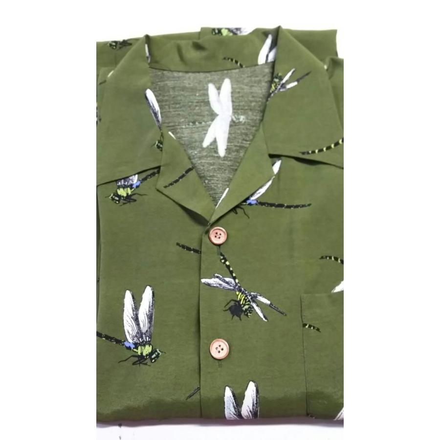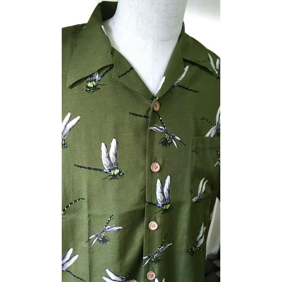メンズアロハシャツ レーヨン100% トンボ柄 カーキ メイドインジャパン