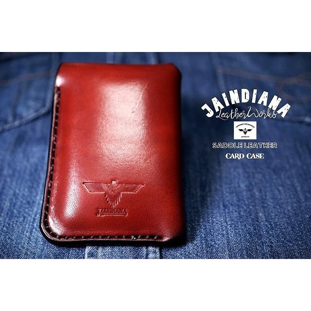 サドルレザー カードケース ビンテージ染めバーガンディー 手縫い・手染め・ハンドメイド