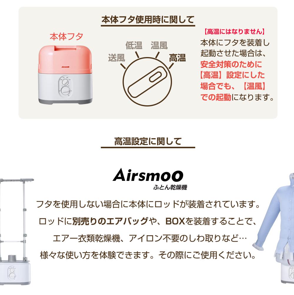ふとん乾燥機 温風ドライヤー 乾燥(髪 ペット 靴 くつ スニーカー ブーツ) 部屋干し乾燥補助など 多機能マルチ小型乾燥機 Airsmoo-04 (エアスムー) 1年保証