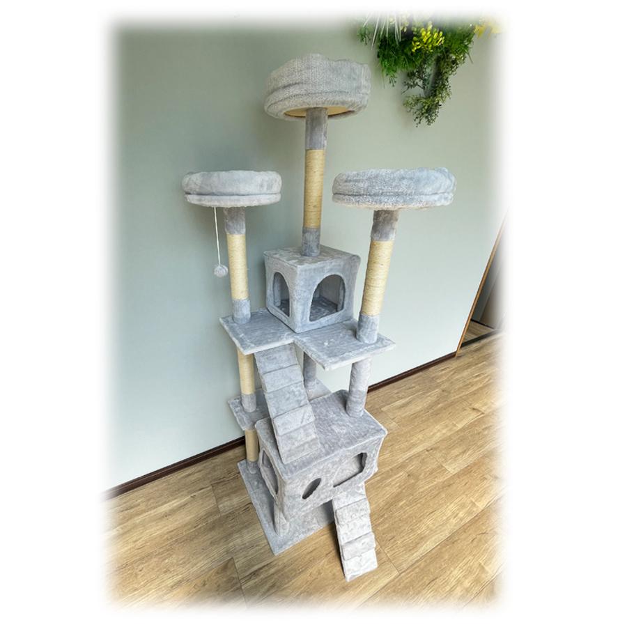 〇多頭飼いにもおすすめ優しい色合いでインテリアに馴染むキャットタワです〇スロプ付きで運動不足解消になります〇ポル部分には爪とぎを採用しているのでストレス解消に役立ちます〇これからの季節にピッタリです〇安定性が高くお留守番が多い子でも安心して使えます〇お客様組み立て商品です