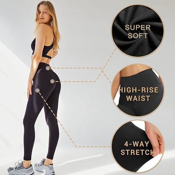 QGGQDD 3 Pack Black High Waisted Leggings for Women Soft Worko 並行輸入品