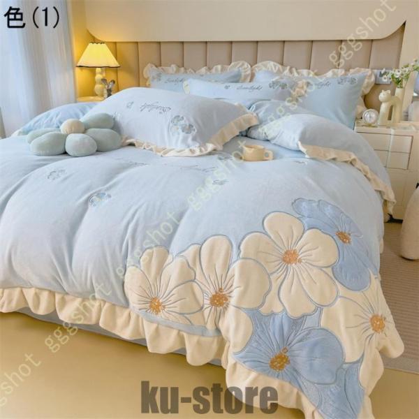 フリル付き フランネル 布団カバー 3点セット 4点セット 北欧 おしゃれ あったか 暖かい 保温 掛け布団カバー 洋式?和式兼用 布団カバー フラットシーツ