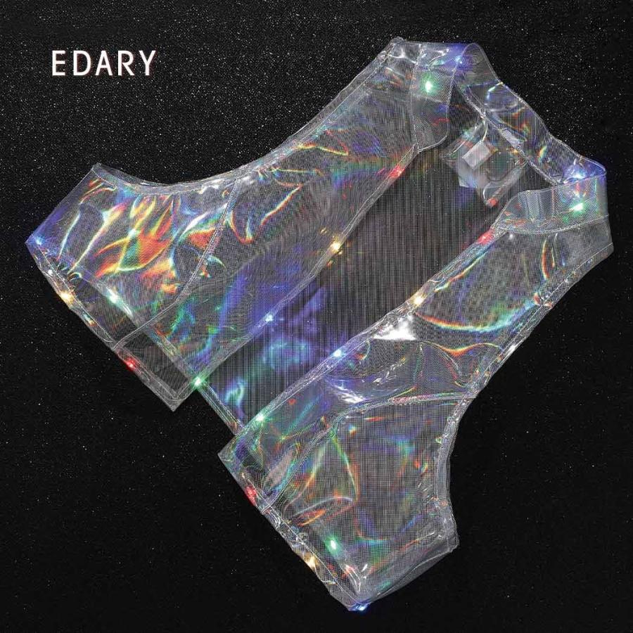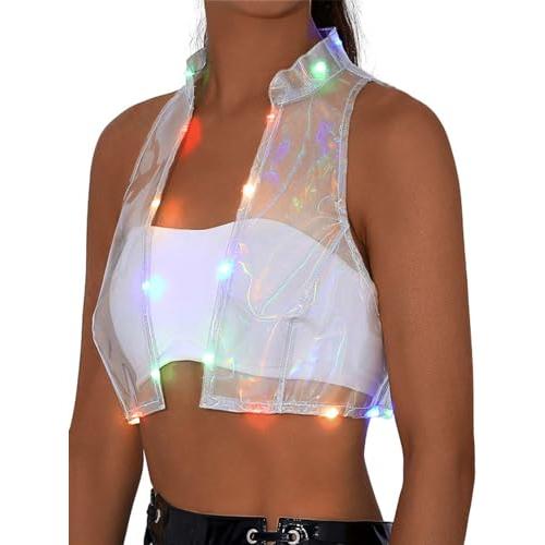 Edary Women's Light up Sleeveless Vest Led Shinny See Through Wa 並行輸入品