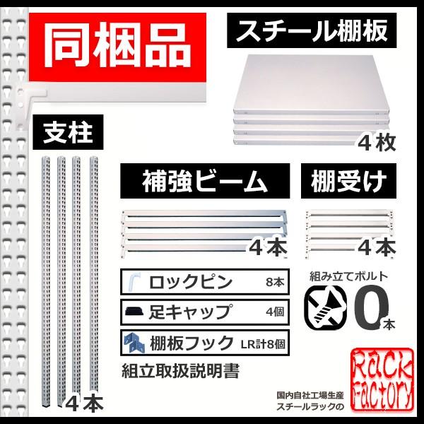 スチールラック 幅150×奥行30×高さ240cm 4段 耐荷重70kg/段 中量棚 業務用 ボルトレス W150×D30×H240cm連結用(支柱2本) スチール棚 収納 棚
