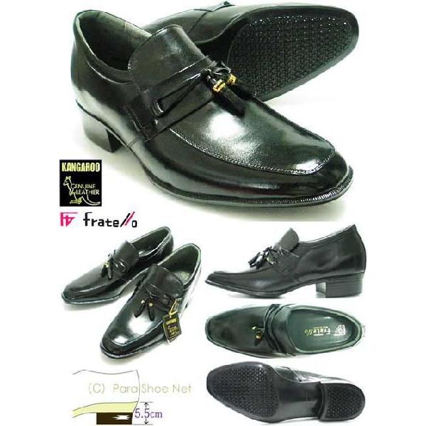 Fratello カンガルー革 タッセルスリッポン シークレットヒールアップ ビジネスシューズ(革靴 紳士靴)黒